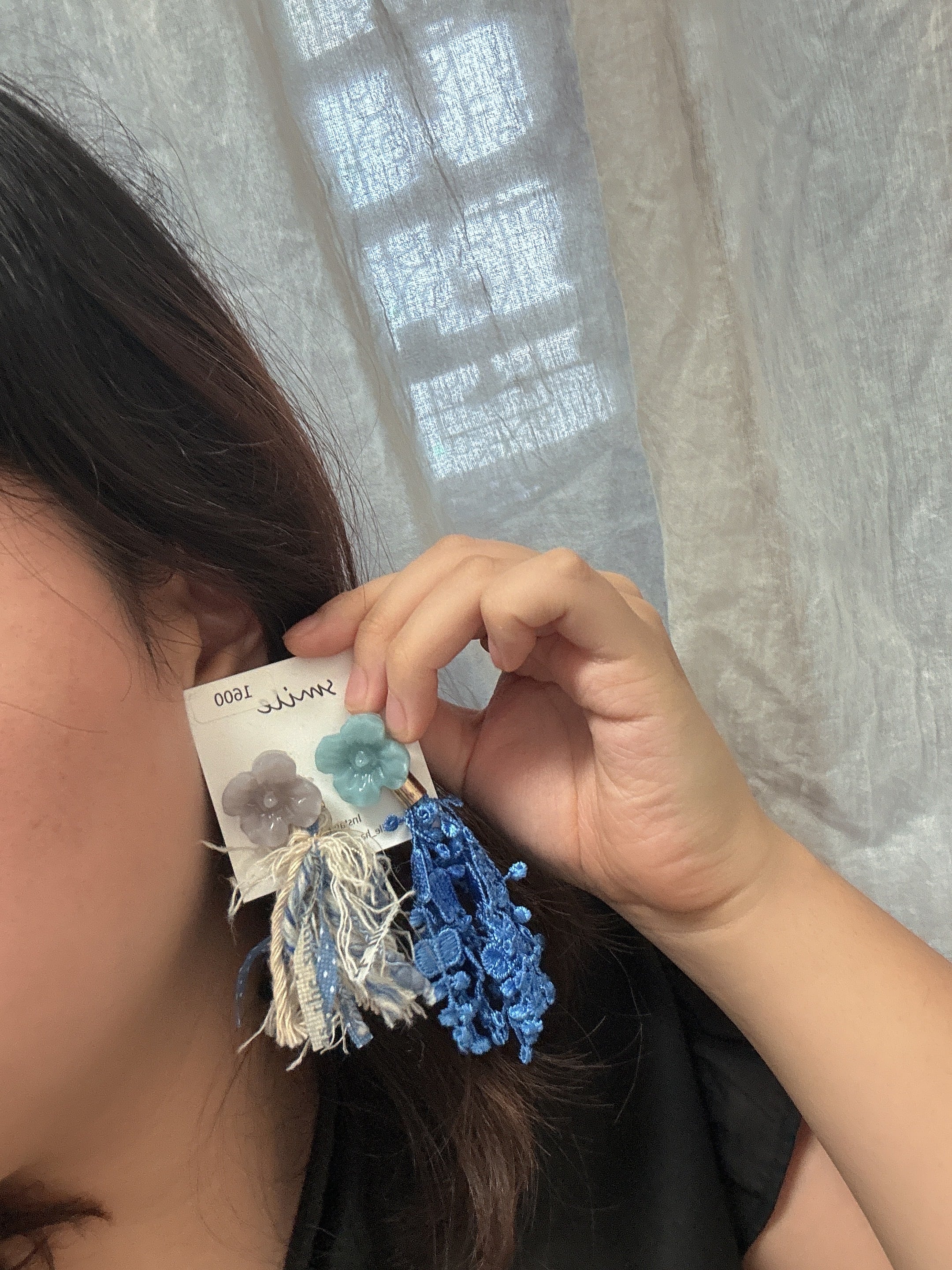 キャッチにアシンメトリーのタッセルを合わせたピアス