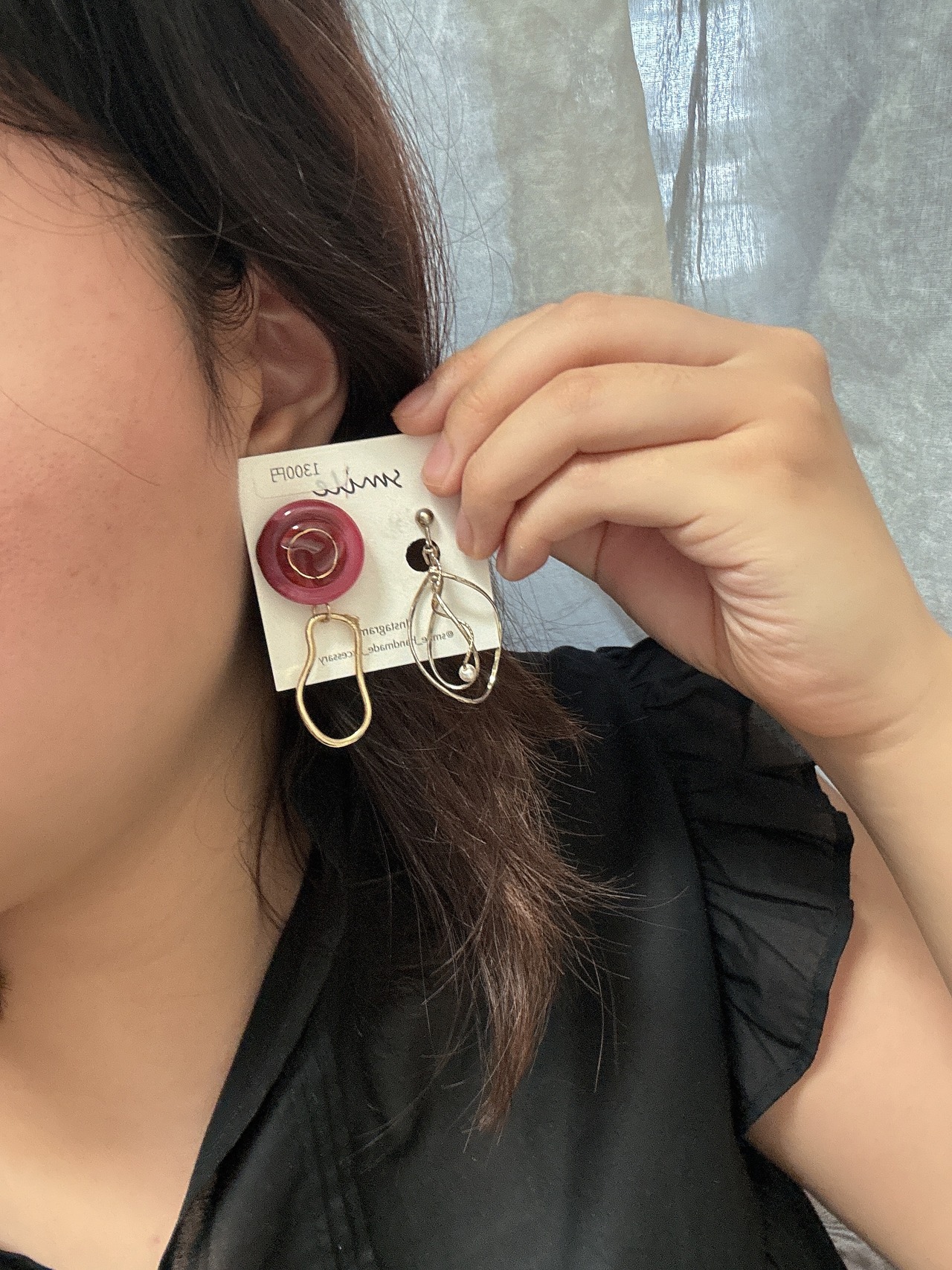 ワインレッドの赤のヴィンテージボタンとゴールドフープのイヤリング