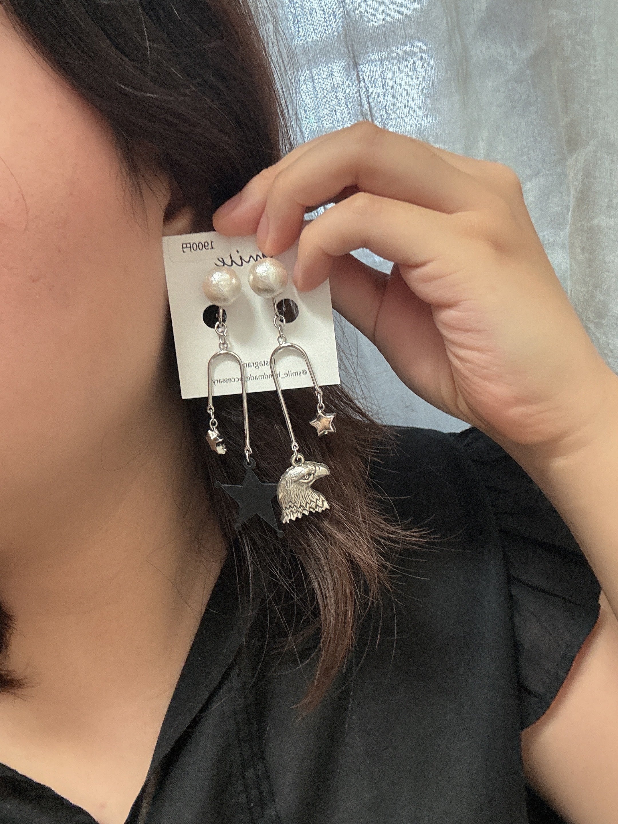 パールとワシの鳥のアシンメトリーイヤリング