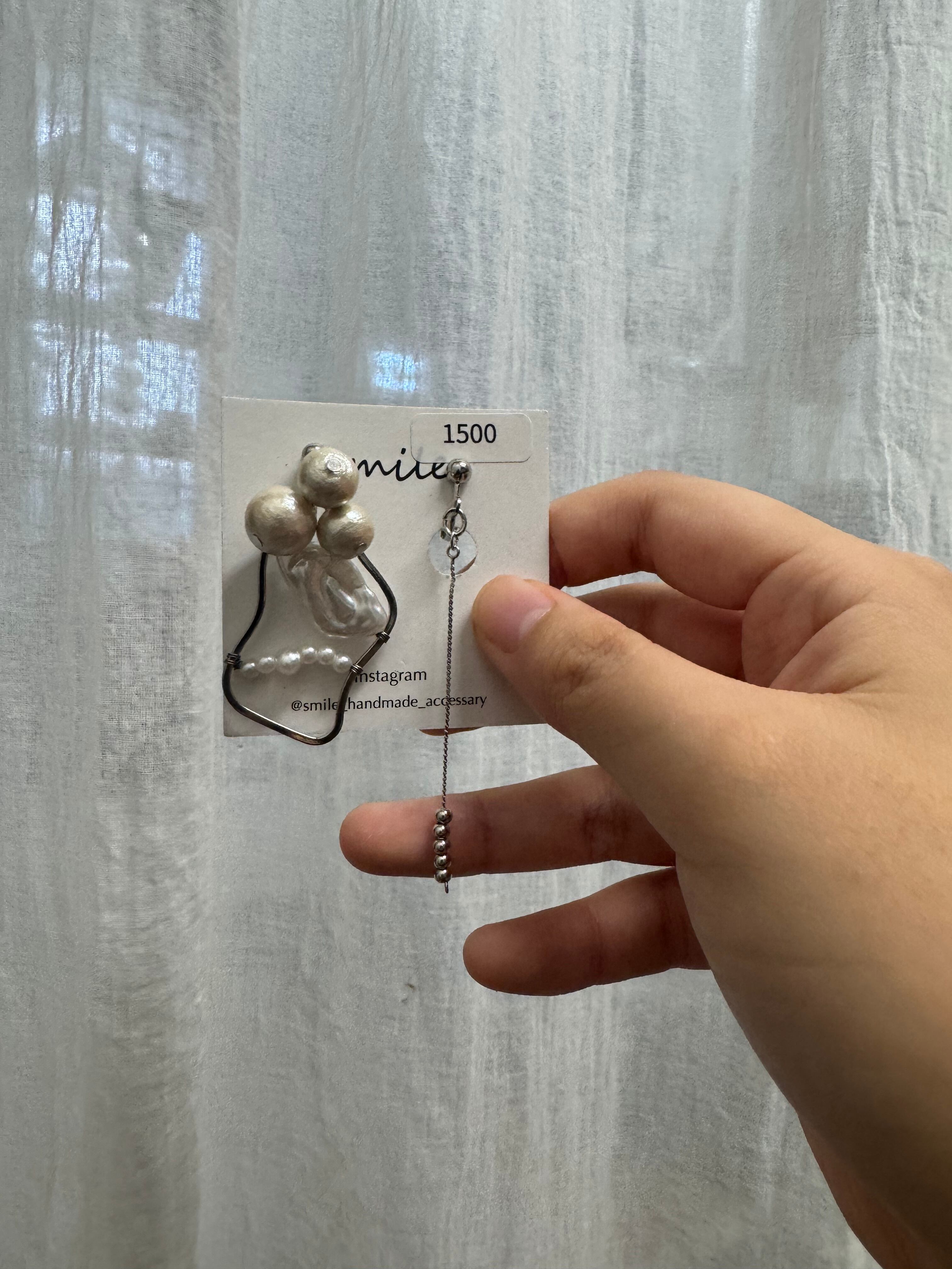 シルバーフープとアシンメトリーのパールイヤリング