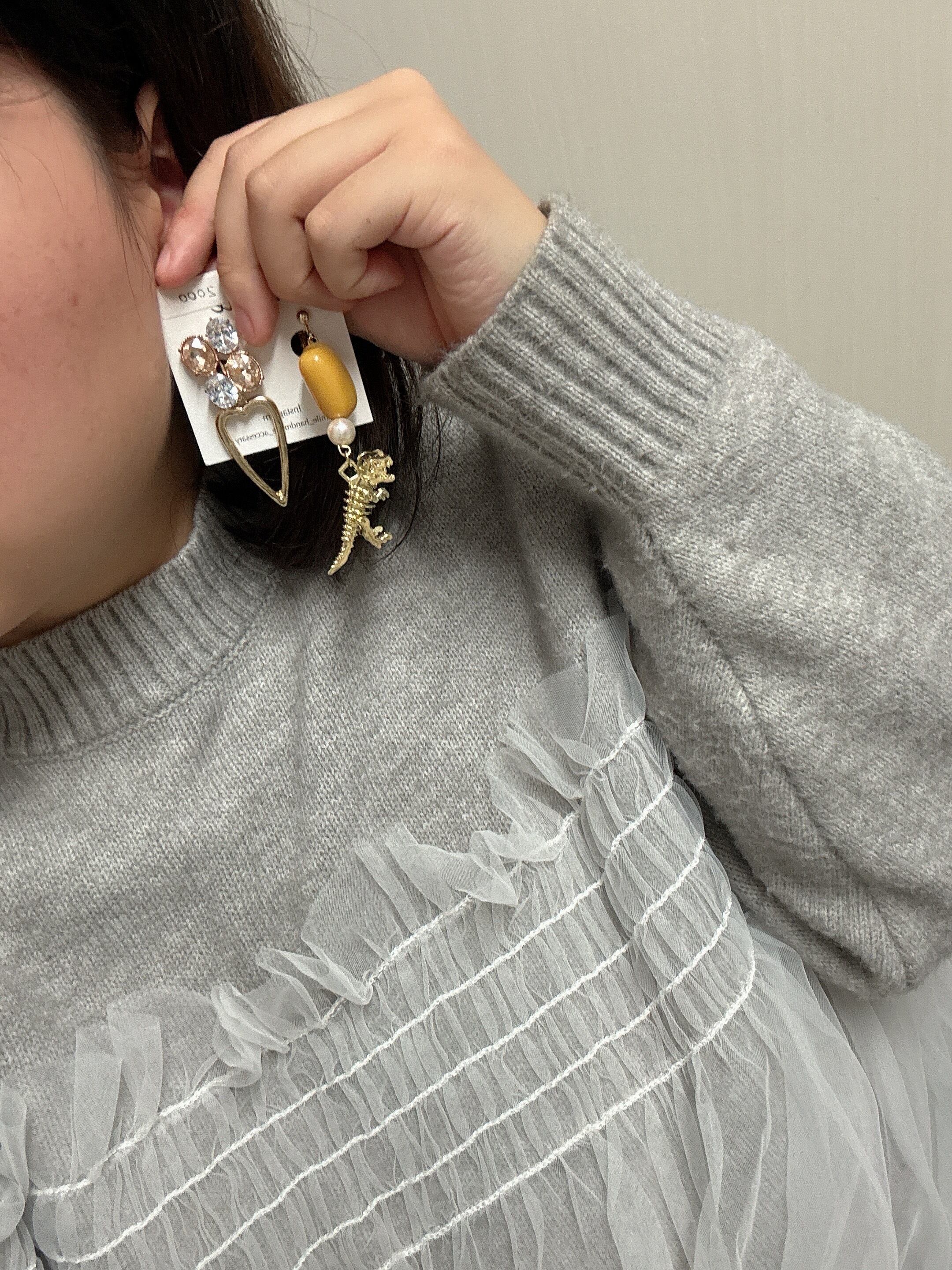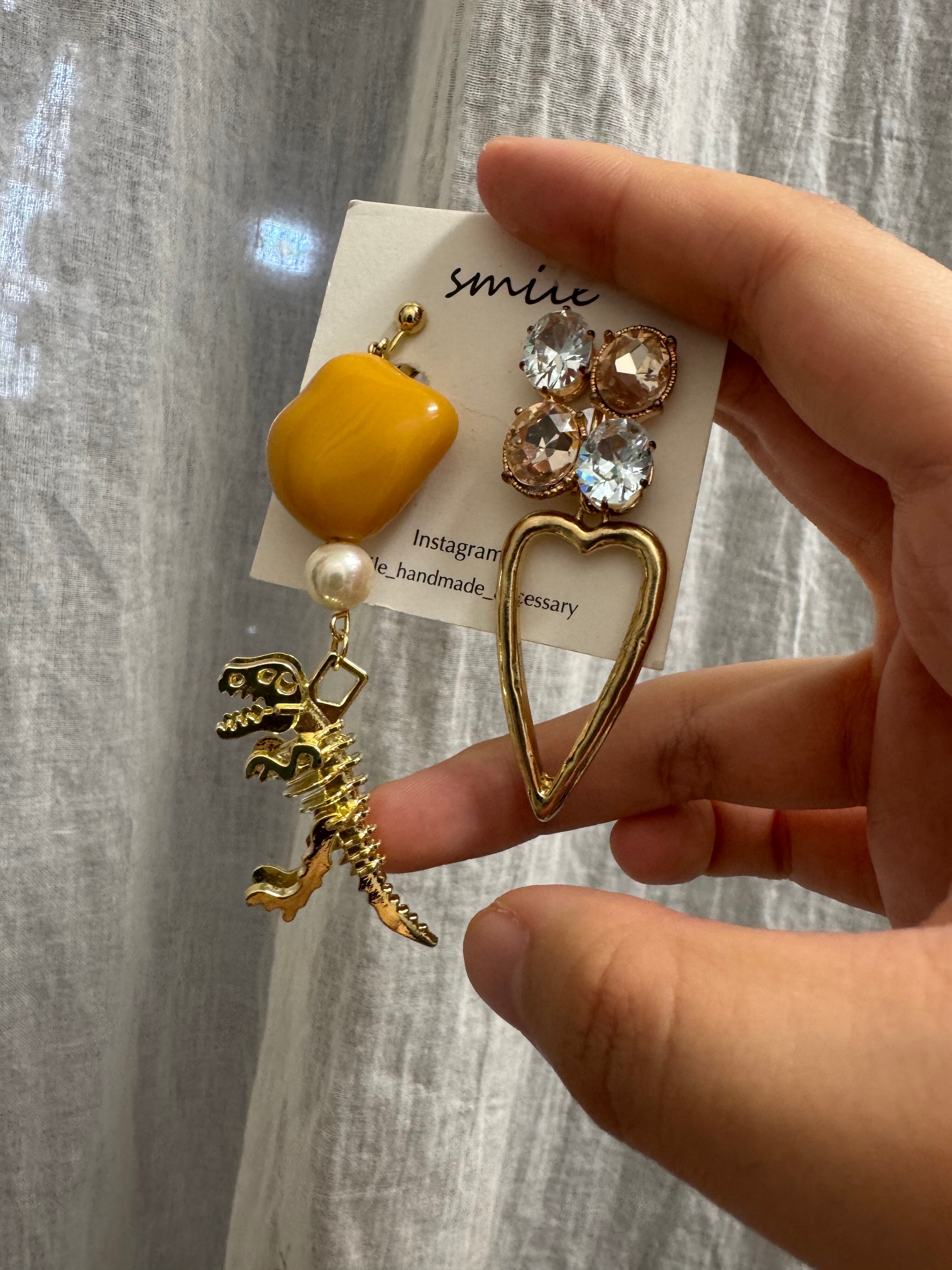 ビジューのキラキラが可愛いゴールド恐竜のイヤリングです