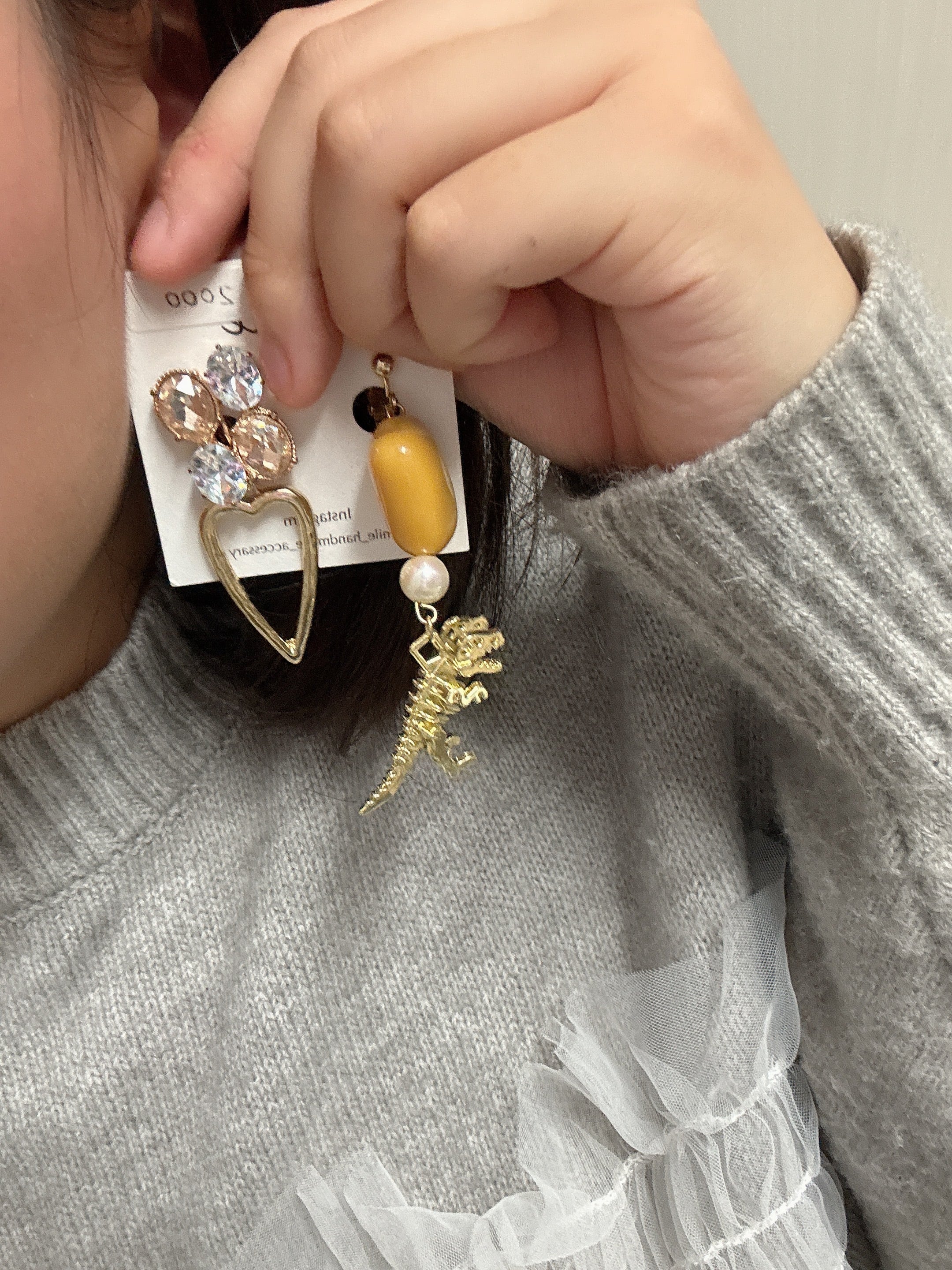 ゴールド恐竜のアシンメトリーイヤリング