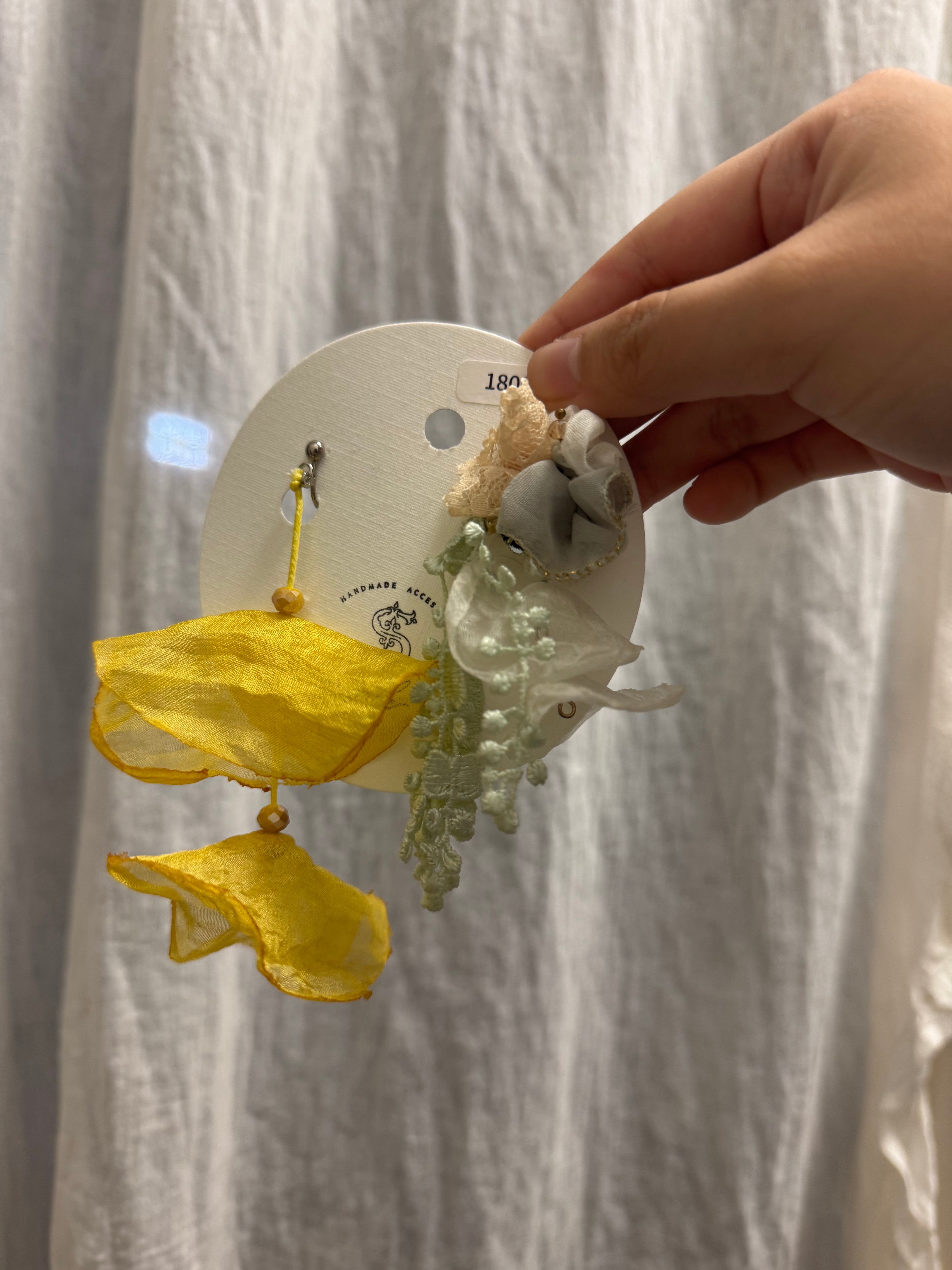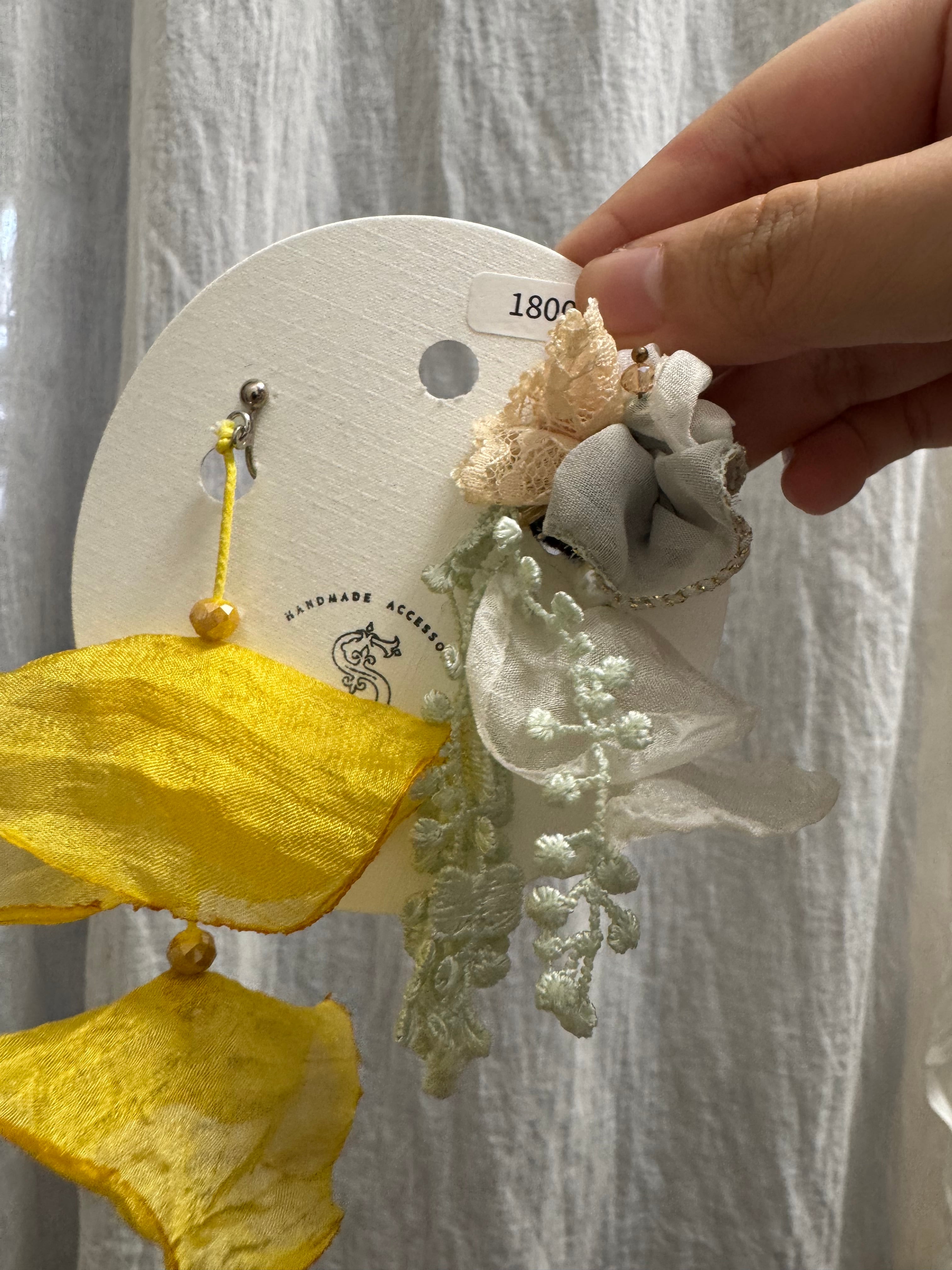 イエローとミントグリーンのハデハデおめかしシリーズイヤリング