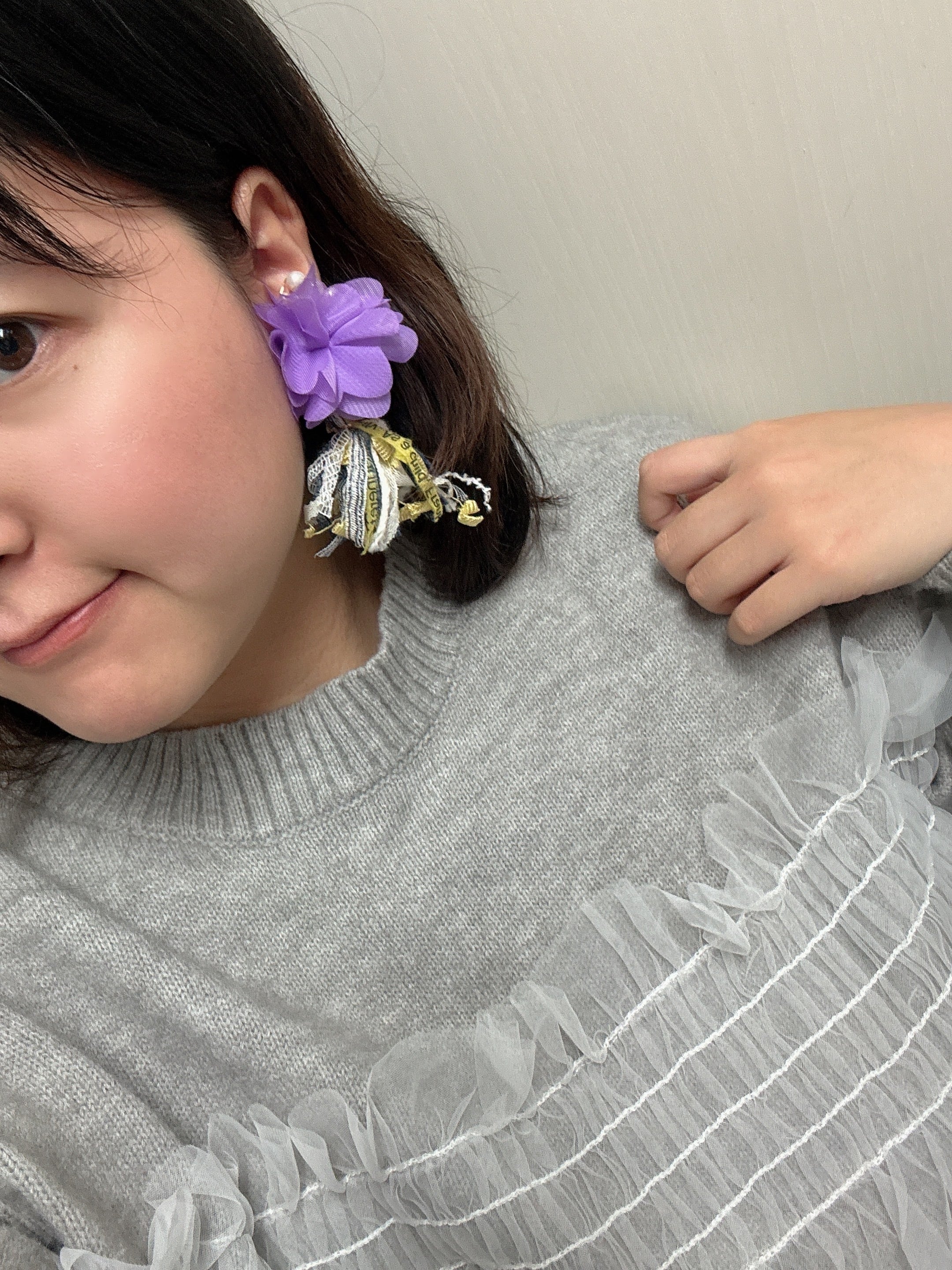 パープルフラワーが可愛いタッセルイヤリング