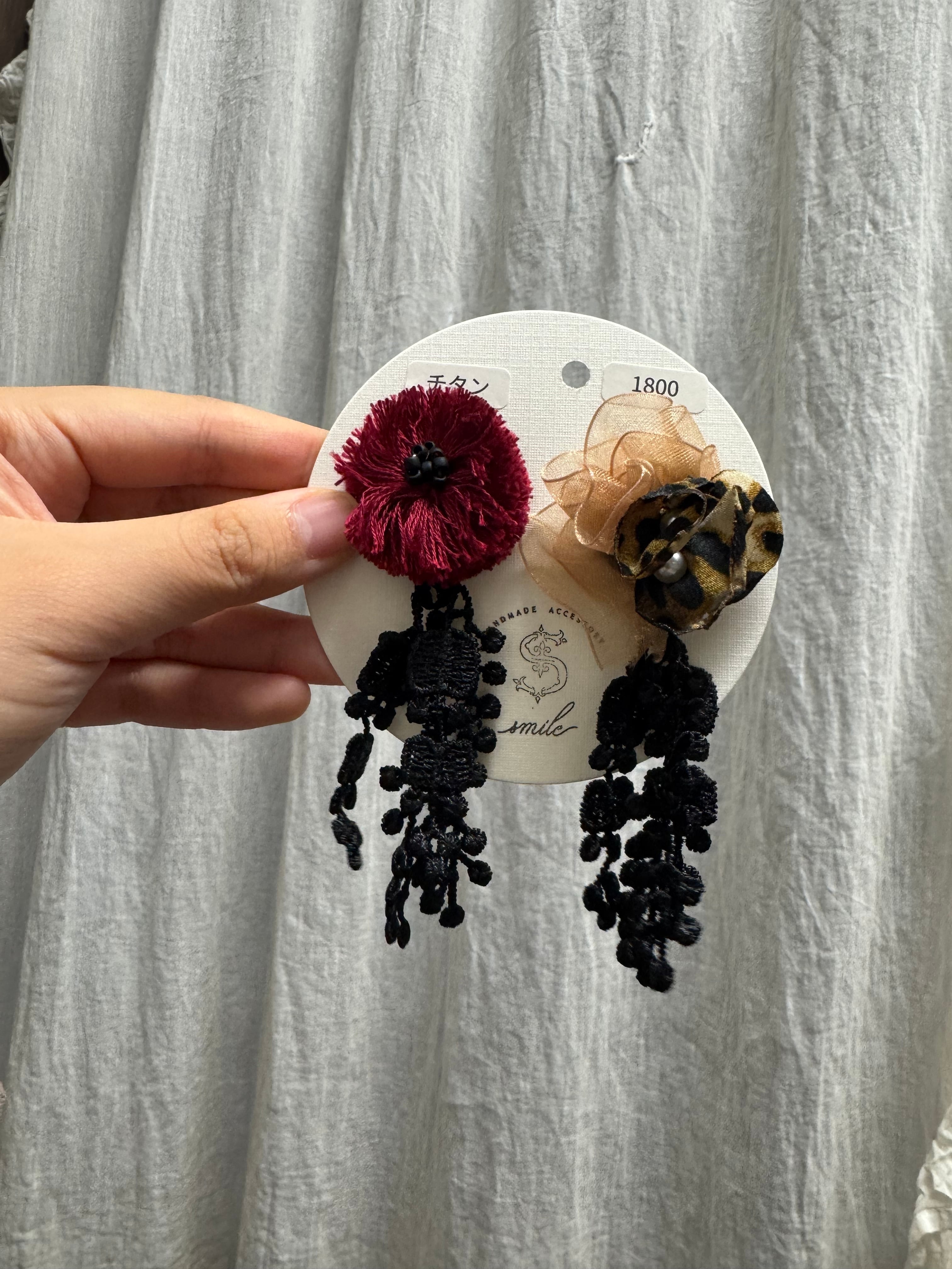 ボルドーレッドとレオパードのハデハデおめかしピアス