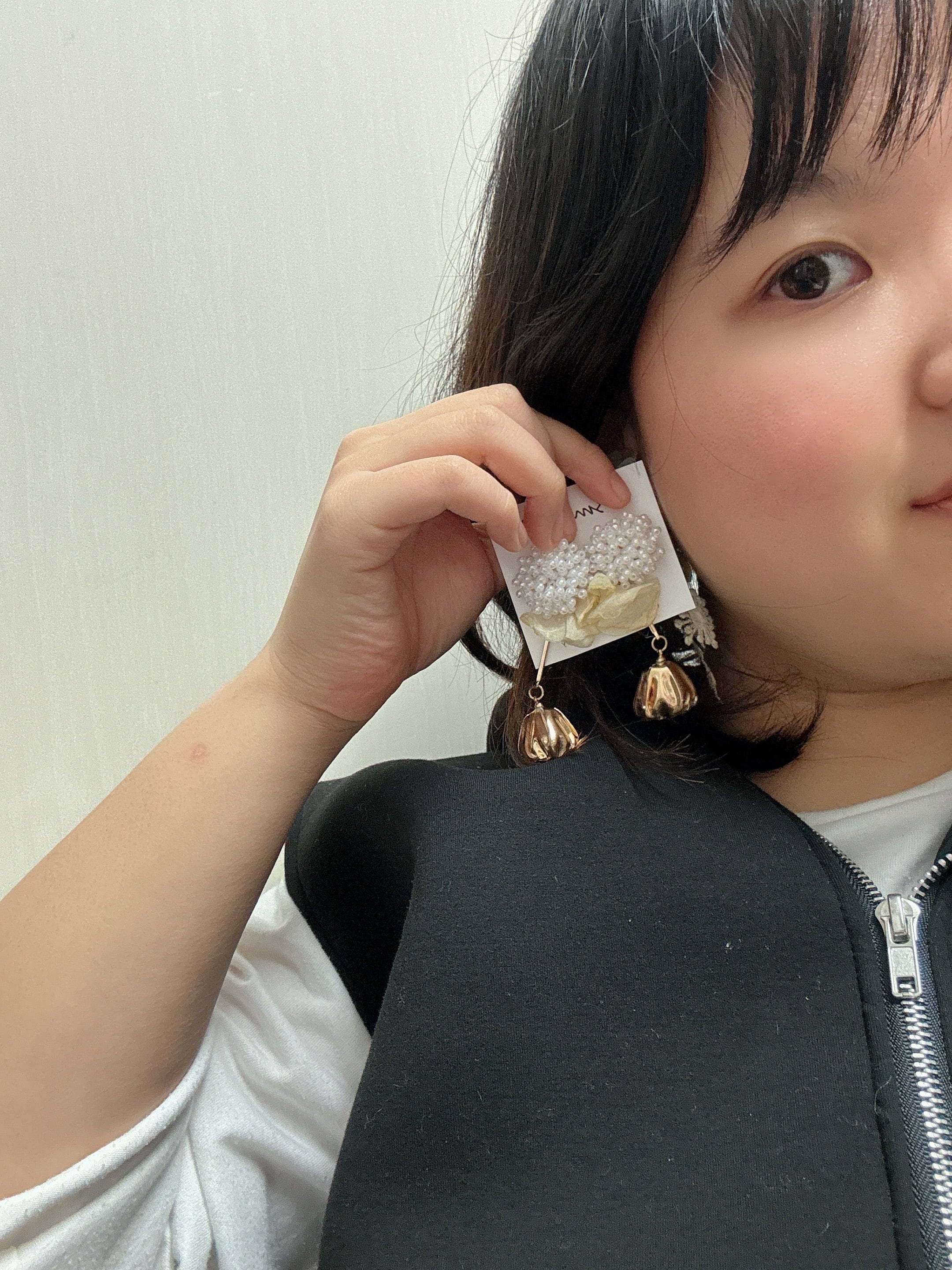 パールとアイボリーシフォンのゴールドフラワーピアス