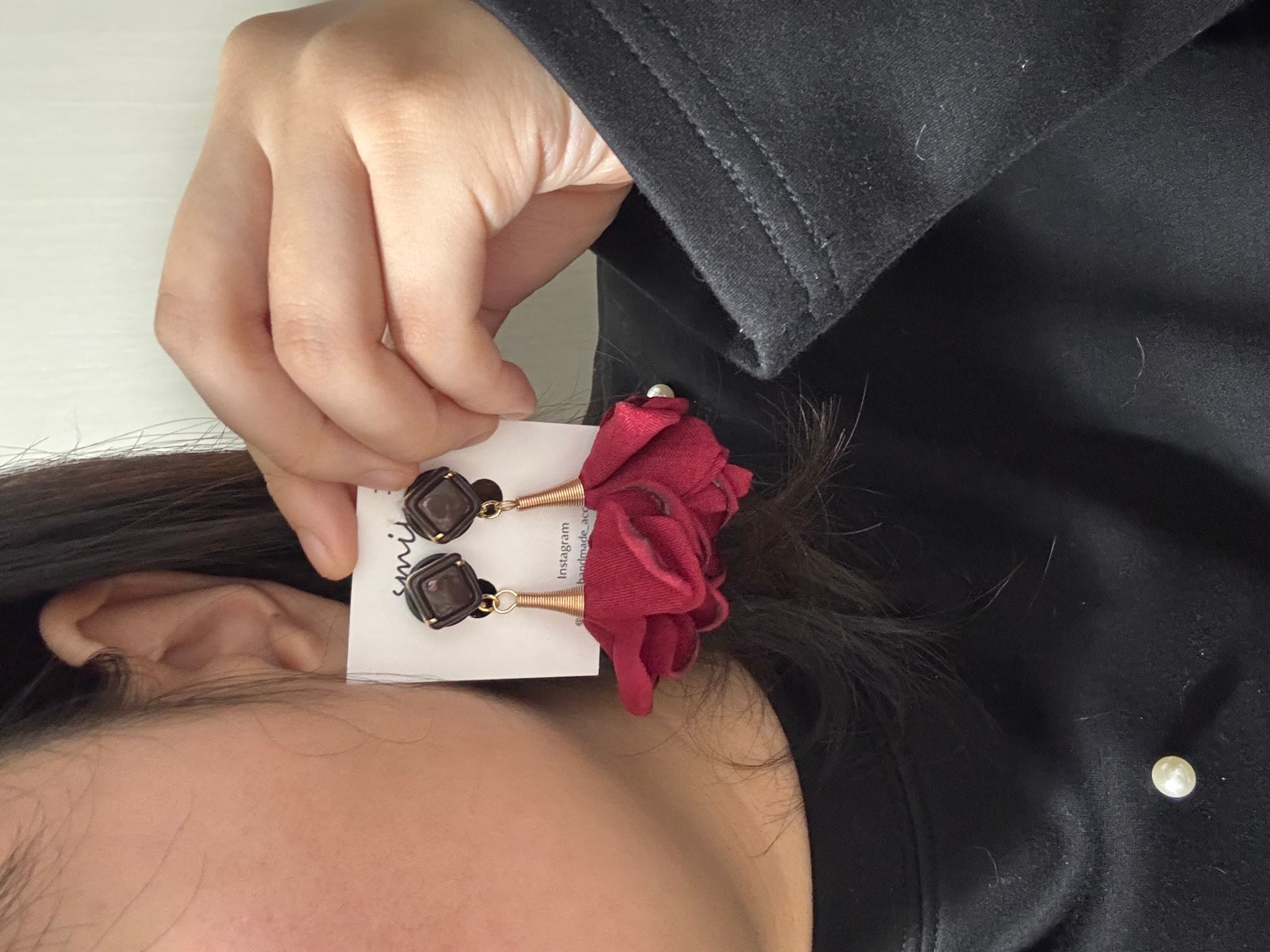 ヴィンテージボタンのボルドータッセルイヤリング